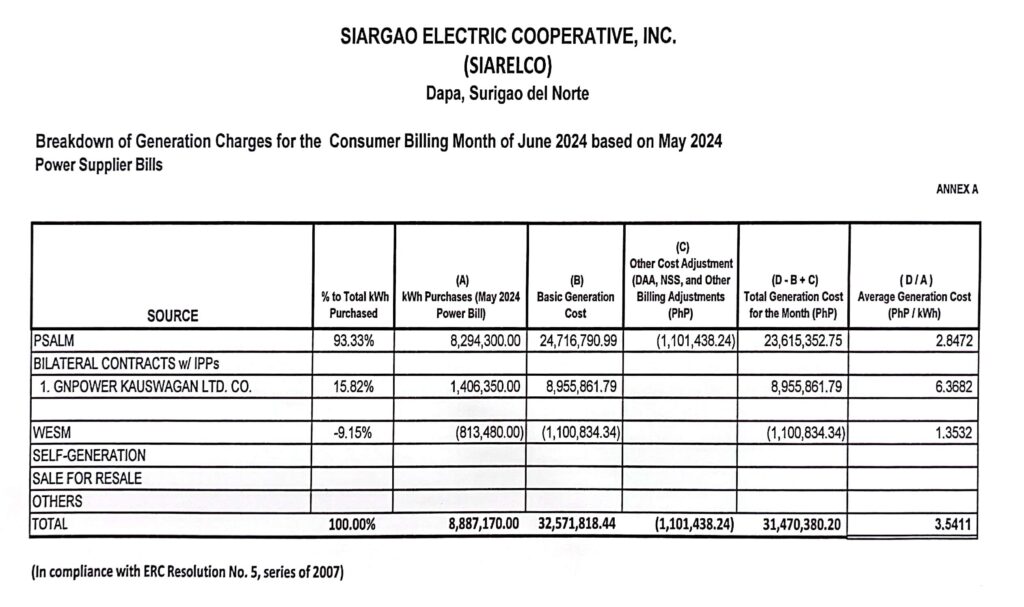 Breakdown of Generation Charges for the Consumer Billing Month of June 2024 based on May 2024