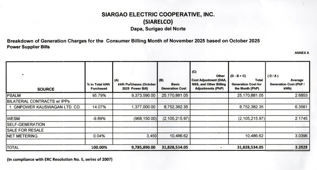 Breakdown of Generation Charges for the Consumer Billing Month of November 2025 based on October 2025By Joel Espinido / December 18, 2025